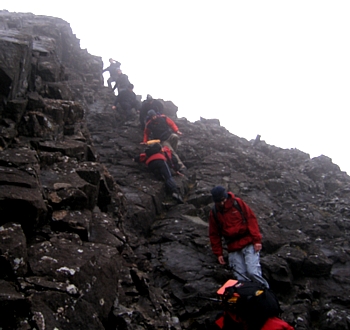 Scrambling involves easy climbing (usually without a rope) and is more exposed than hill walking. The Skye ridges are a typical example.